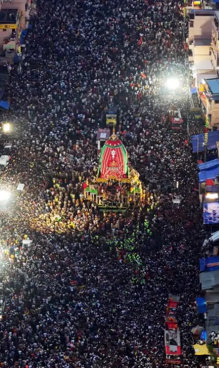 खबरगुरू (पुरी) 28 जून। ओडिशा के पुरी में भगवान जगन्नाथ की रथ यात्रा की शुरुआत हो चुकी है। 12 दिन चलने वाली रथ यात्रा का आज दूसरा दिन है। ज 10 बजे फिर रथयात्रा शुरू हो गई। तीनों रथ भक्तों ने खींचना शुरू कर दिए हैं। 10 लाख) के करीब श्रद्धालु पहुंचे। प्रभु के रथ की रस्सी खींचने के लिए भक्तों में होड़ मची। भगवान जगन्नाथ की रथ यात्रा में विदेशों से भी श्रद्धालु पहुंचे हैं।
