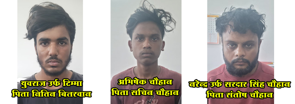 1. नरेन्द्र उर्फ सरदार सिंह चौहान पिता संतोष चौहान जाति नायक उम्र 33 साल निवासी कुन्दन नगर इन्दौर