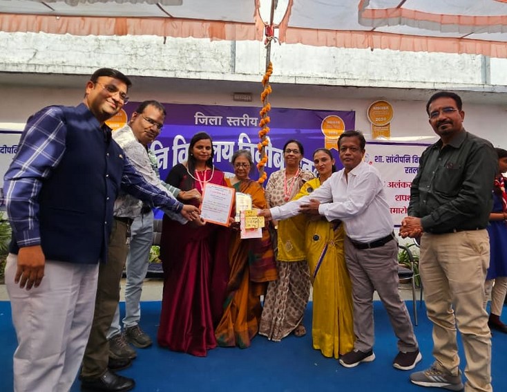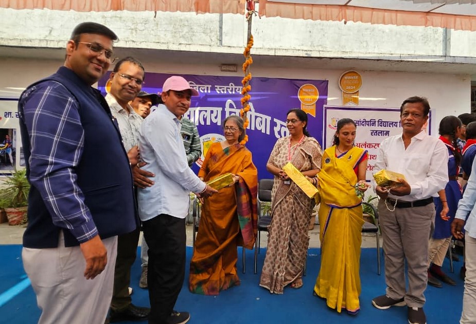 खबरगुरु (रतलाम) 15 अक्टूबर। शासकीय सांदीपनि विद्यालय, रतलाम के विद्यालय प्रबंधन समिति (SMC) द्वारा शिक्षक अलंकरण 2025 का आयोजन किया गया। कार्यक्रम पद्मश्री से सम्मानित डॉ. लीला जोशी, जितेंद्र जोशी योजना अधिकारी शिक्षा विभाग, क्षेत्रीय पार्षद आशा राजीव रावत की गरिमामय उपस्थिति में आयोजित हुआ। बोर्ड परीक्षाओं में शत-प्रतिशत परिणाम देने वाले शिक्षक एवं उत्कृष्ट कार्य करने वाले कर्मचारियों को अलंकरण 2025 से नवाजा गया। कार्यक्रम में विद्यालय के 37 शिक्षकों एवं कर्मचारियों को सम्मानित किया गया जिन्होंने प्राथमिक, हाईस्कूल और हायर सेकंडरी की बोर्ड परीक्षा 2025 में शत-प्रतिशत परीक्षा परिणाम के माध्यम से विद्यार्थियों की शिक्षा में बेहतर योगदान दिया है।  प्राचार्या संध्या वोहरा ने स्वागत भाषण दिया तथा उप प्राचार्य गजेन्द्र सिंह राठौर ने संस्था की गतिविधियों पर प्रकाश डाला।